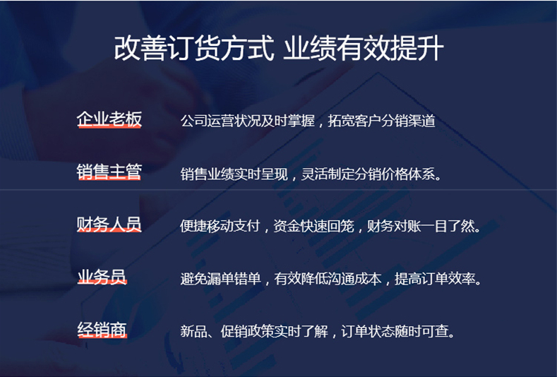 通過挪挪訂貨系統(tǒng),讓客戶了解商品,買商品更加方便,給予客戶更多更好的服務(wù),提升粘度經(jīng)營客戶,讓企業(yè)快速發(fā)展、積極拓展市場,精良的裝備更能有效的占領(lǐng)客戶,提升客戶參與性和互動(dòng)性,一步領(lǐng)先。在下方可以留言,也可申請免費(fèi)試用。